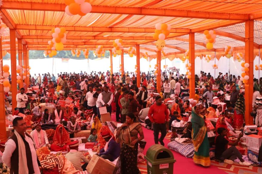 मऊ में आयोजित मुख्यमंत्री सामूहिक विवाह योजना में 124 वर वधू बंधन में बंधे ।