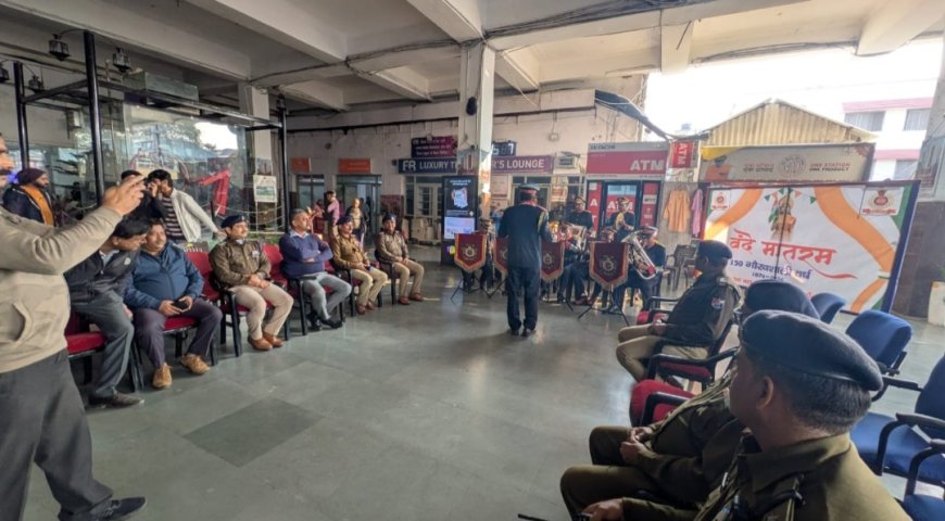 लखनऊ(हिन्द भास्कर):- रेलवे सुरक्षा बल पूर्वोत्तर रेलवे लखनऊ मण्डल द्वारा "वन्दे मातरम" गीत की 150वी. वर्षगांठ के अवसर पर ‘‘वन्दे मातरम‘‘ थीम के अन्तर्गत RPF बैण्ड के द्वारा रेलवे स्टेशन लखनऊ जं0 पर राष्ट्रीय गीत ‘‘वन्दे मातरम‘‘ की धुन बजाया गया। "वन्दे मातरम" की धुन ने सभी का दिल जीत लिया।