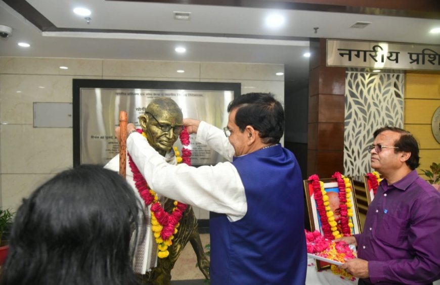 लखनऊ(हिन्द भास्कर):- राष्ट्रपिता महात्मा गांधी एवं पूर्व प्रधानमंत्री लाल बहादुर शास्त्री की जयंती के अवसर पर नगर विकास एवं ऊर्जा मंत्री ए.के. शर्मा ने स्थानीय निकाय निदेशालय, लखनऊ में आयोजित कार्यक्रम में दोनों महापुरुषों की प्रतिमाओं पर पुष्प अर्पित कर उन्हें श्रद्धा सुमन अर्पित किए।