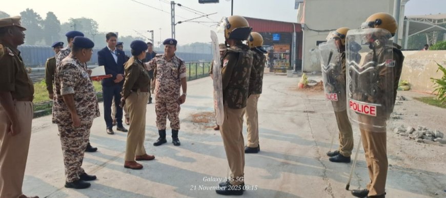 वरि. मण्डल सुरक्षा आयुक्त कार्यालय के निरीक्षण के दौरान उपस्थित अपर पुलिस महानिदेशक/राजकीय रेलवे पुलिस, उ0प्र0 लखनऊ प्रकाश डी के साथ यात्रियों की सुरक्षा के सम्बन्ध में विस्तार से वार्ता करते हुए अपराध नियंत्रण के लिए वर्तमान टेक्नोलाॅजी पर जोर देते हुए टेक्नोलाॅजी का बेहतर इस्तेमाल करने व यात्री विषयक अपराधों के नियंत्रण सुरक्षात्मक कदम उठाने एवं रेसुबल के साथ बेहतर समन्वय स्थापित करते हुए अपराध नियंत्रण के लिए निर्देशित किया गया।