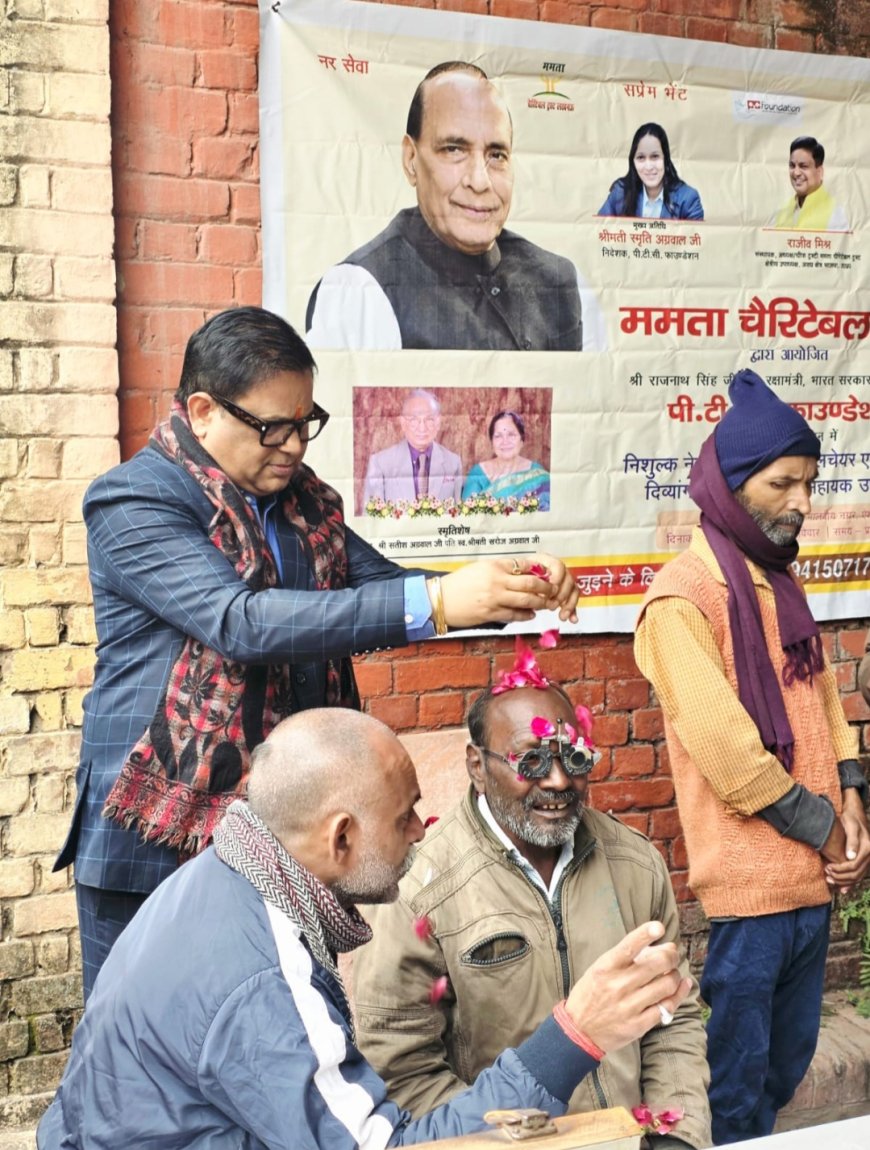 लखनऊ(हिन्द भास्कर):- नर सेवा नारायण सेवा की पर्याय ममता चैरिटेबल ट्रस्ट लखनऊ के द्वारा आयोजित कंबल एवं स्वास्थ्य किट तथा कृत्रिम अंग वितरण महा अभियान के क्रम में 21-12-2025 दिन रविवार को पीटीसी कम्पनी ग्राउंड मालवीय नगर ऐशबाग लखनऊ में सघन नेत्र जाँच शिविर लगाया गया जिसमें हज़ारों की संख्या में बुजुर्गों,महिलाओं,असहायों तथा जरूरतमंदों के नेत्र जांच लखनऊ के विशेषज्ञ नेत्र चिकित्सको एवं नेत्र सहायक टीम द्वारा किया गया!
